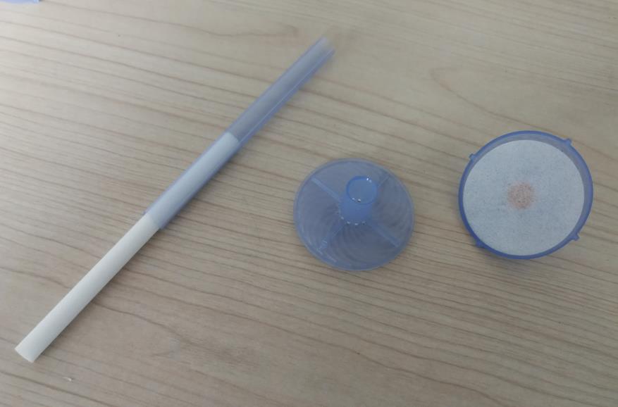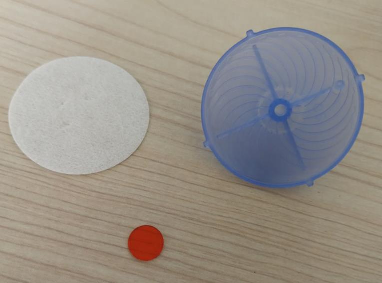 本項目共完成6個(gè)零件的自動(dòng)裝配,其中有2個(gè)注塑件上傘蓋下傘蓋,一PVC片直徑11.5mm厚0.9mm名稱(chēng)分流片,一直徑40mm無(wú)紡布片名稱(chēng)濕化體,一段導水殼一段導水芯。自動(dòng)裝配過(guò)程:轉盤(pán)式多工位方式,涉及到兩個(gè)塑料料扣合,導水芯導水殼插裝,濕化體模切后自動(dòng)就位。